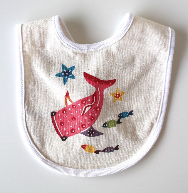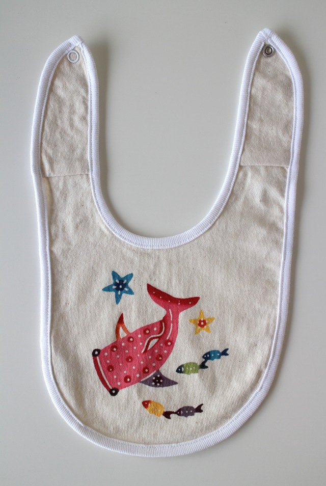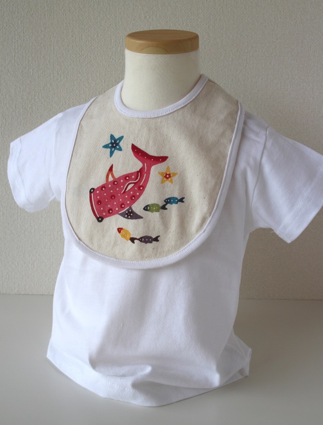 世界一の魚「ジンベエザメ」の柄をあしらったベビースタイです。