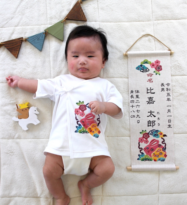 • 【命名・干支】紅型タペストリー(命名・生年月日・生まれ順・身長・体重入り) 誕生記念や出産祝いに!<受注制作/ご注文から6週間程度>【完全前払い制(クレジット決済・振込のみ)】