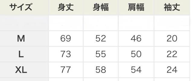 XLサイズ : 身丈77・身幅58・肩幅54・袖丈24