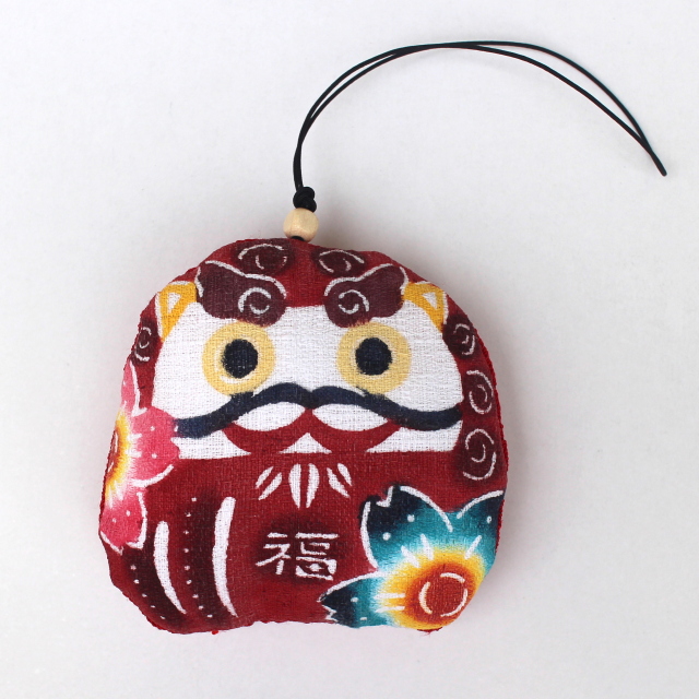 沖縄紅型だるま マース(塩)入り御守りストラップ<合格祈願!受験生応援!贈り物にもおススメです>【送料:600円・クレジット決済のみ】