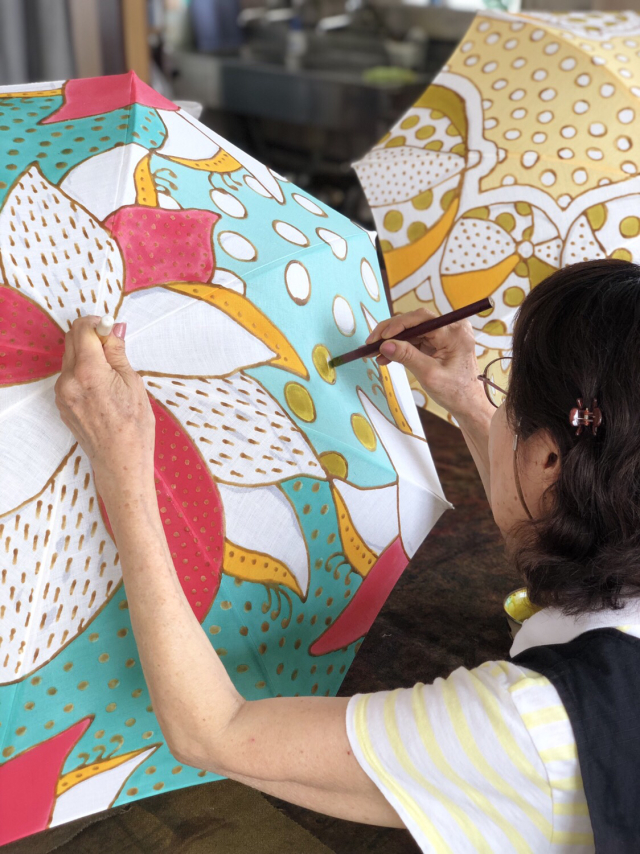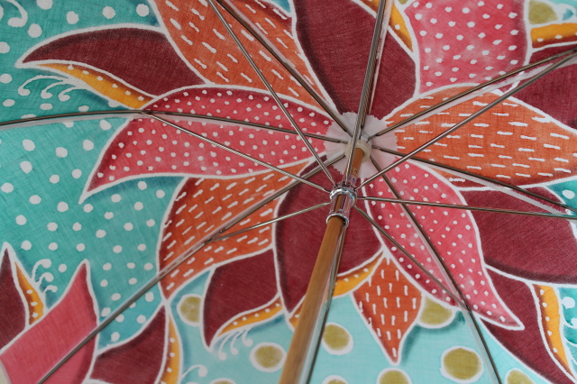 夏の日差しに映える色鮮やかな紅型染めの日傘です。